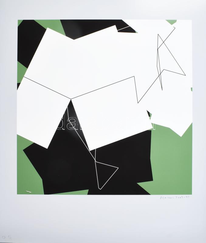 Manfred Mohr (1938-): Geometrikus kompozíció (cím nélkül), 2009-21. Computer nyomat, papír, jelzett, számozott: 0 1/1. Egyedi, gyűjtői darab!