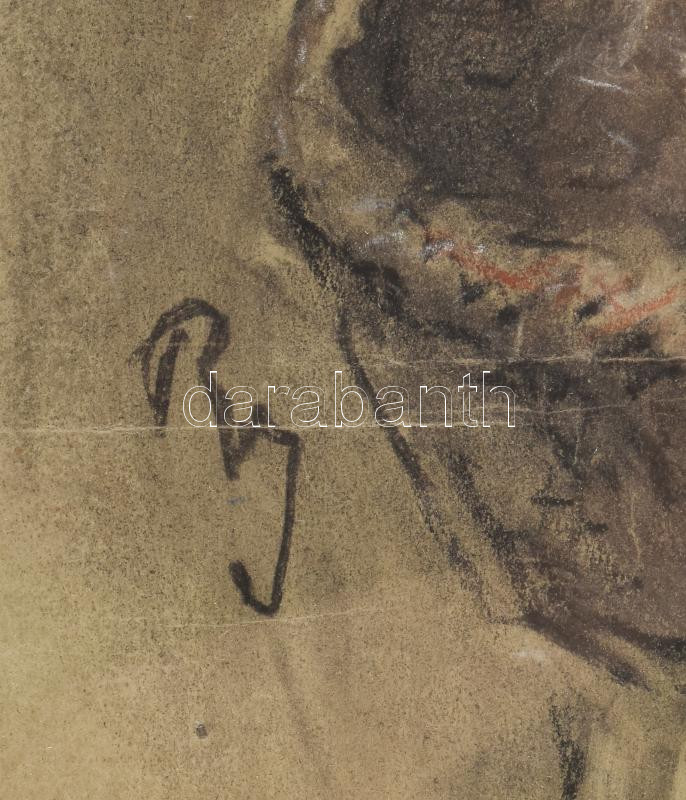 Révész Imre (1859-1945): Parasztasszony kosárral. Vegyes technika, papír, kisebb felületi sérülésekkel, restaurált, jelzett, üvegezett keretben 49x33 cm / mixed technique on paper, restored, slightly damaged, framed
