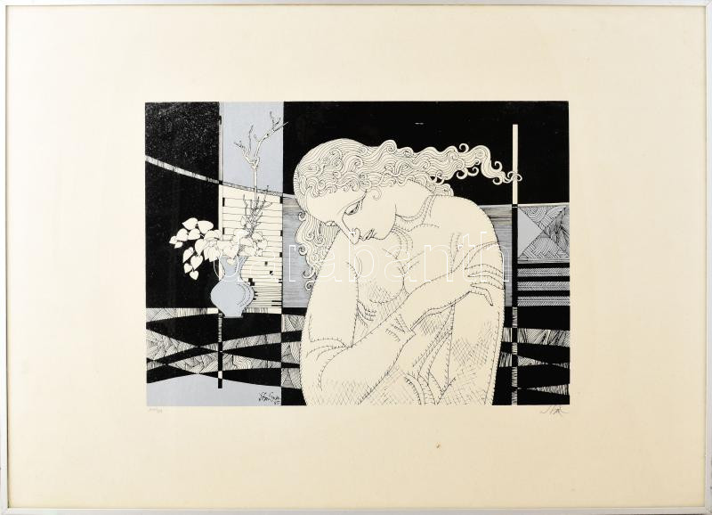 Szász Endre (1926-2003): Szürrealisztikus Hölgy. Szitanyomat, papír, j...