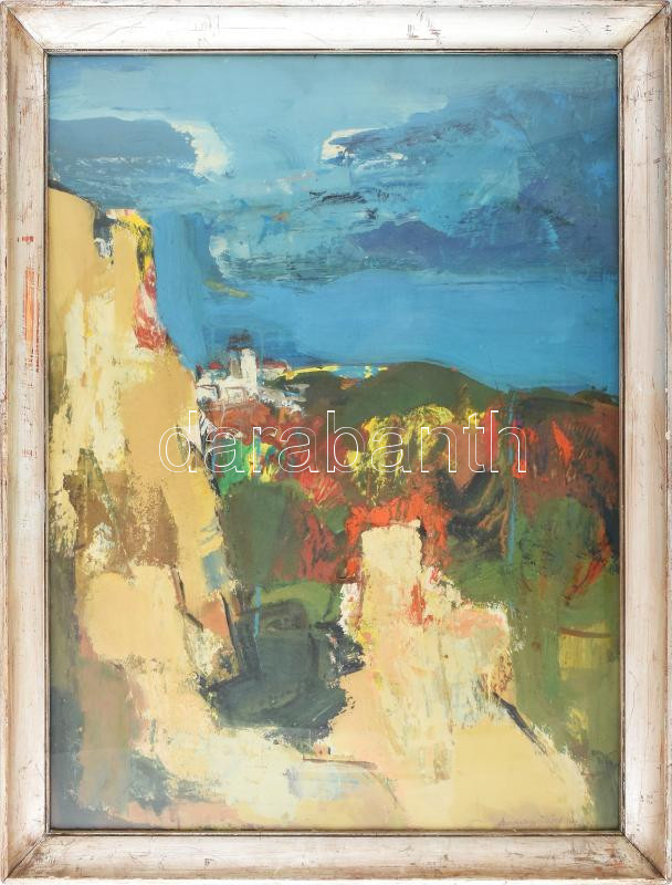 Szentgyörgyi József (1940-2014): Sziklás táj, 1972. Olaj, farost, jelz... https://www.darabanth.com/en/457-Online-auction/457.0/Paintings-and-graphics/Paintings-and-graphics~500002/Szentgyorgyi-Jozsef-1940-2014-Sziklas-taj-1972-Olaj-farost-jelzett-hatoldalan-autogra~II2986087