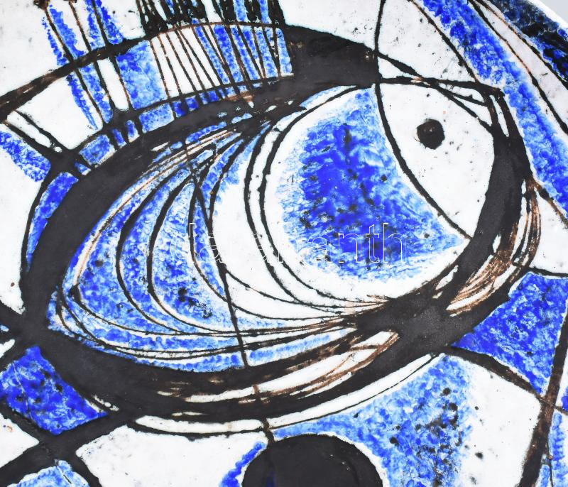 Benkő Ilona (1937-): Halas tál, kék és fehér mázakkal festett kerámia,...