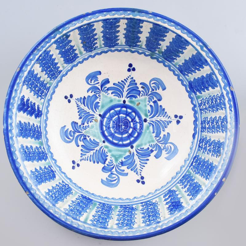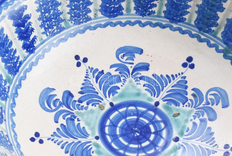 Formás tál. 19. sz. második fele, Felvidék, ónmázas fajansz, kopással, restaurált d: 30,5 cm