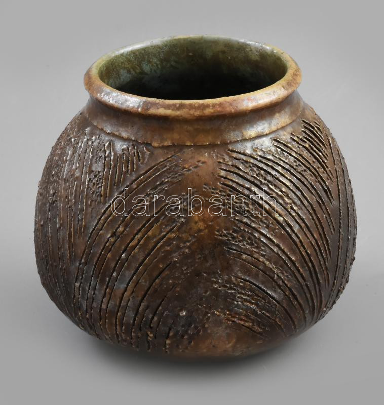 Füzesi Zsuzsa (1953-): Díszváza. Mázas kerámia, jelzett, hibátlan m: 12 cm