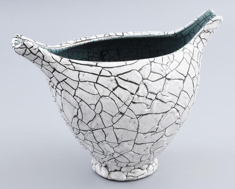 Iparművészeti Vállalatos Gorka mázas kerámia váza, jelzett, hibátlan, 23x16 cm