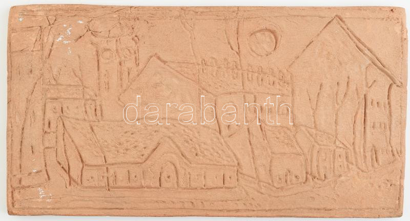 Kerámia falikép, mázatlan, AS jelzéssel, kopásokkal, 12x22 cm