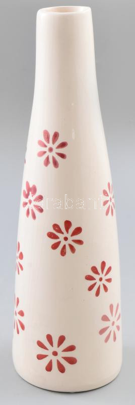 Retro mázas kerámia váza, stilizált virág díszítéssel, jelzés nélkül, hibátlan, m: 30 cm