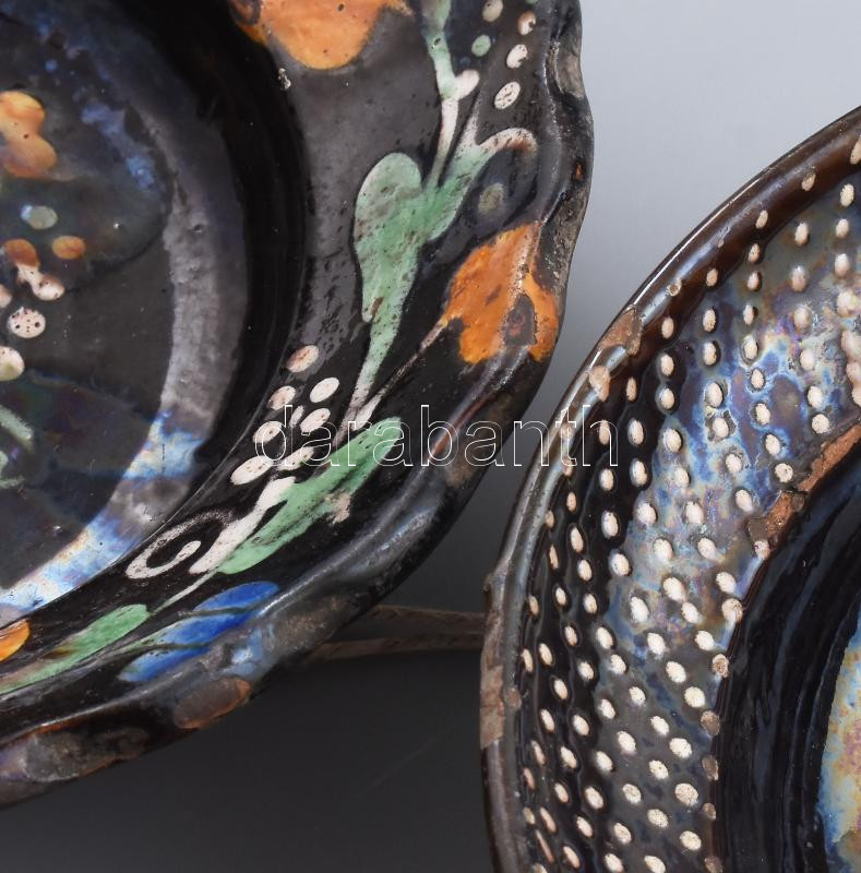 Tányér, 2 db. Torda, cca 19. sz. közepe, mázas kerámia, kopott, egyik restaurált, d: 20-21 cm