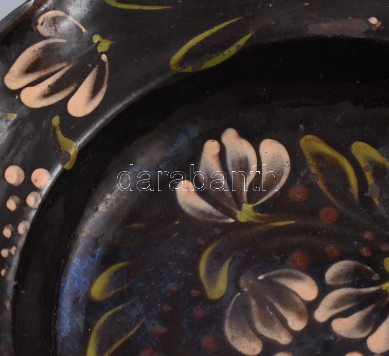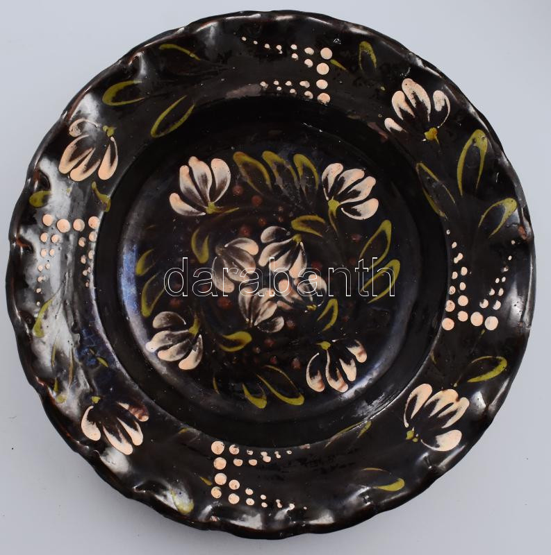 Tányér. Torda, 19. sz. vége, mázas cserép, kopott, d: 30 cm