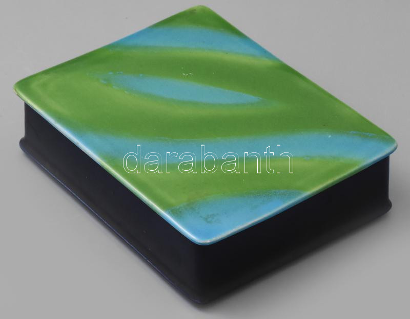 Türkizes kerámia ládika, ékszertartó. Mázas kerámia, jelzés nélkül, ki...