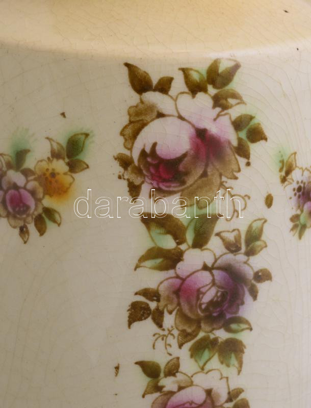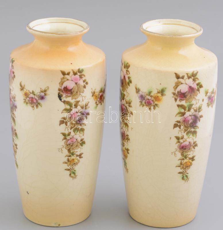2 db virágmintás angol porcelán váza, matricás, jelzetlen, kopásokkal, máz alatti hajszálrepedésekkel, m: 20 cm