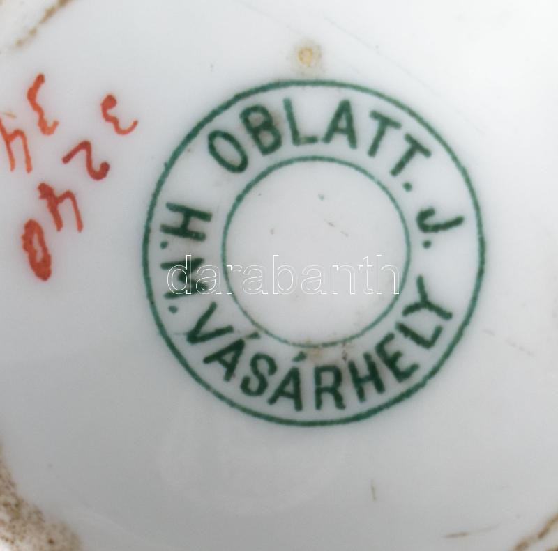Antik Oblatt J(úlia) Hódmezővásárhely jelzett vastagüveg bögre, kopáss...