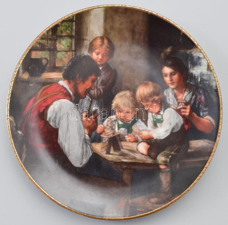 Bareuther Bavaria porcelán fali dísztányér, Franz von Defregger sorozat, "Das Kartenhaus". Matricás, jelzett, számozott, hibátlan, d: 20 cm