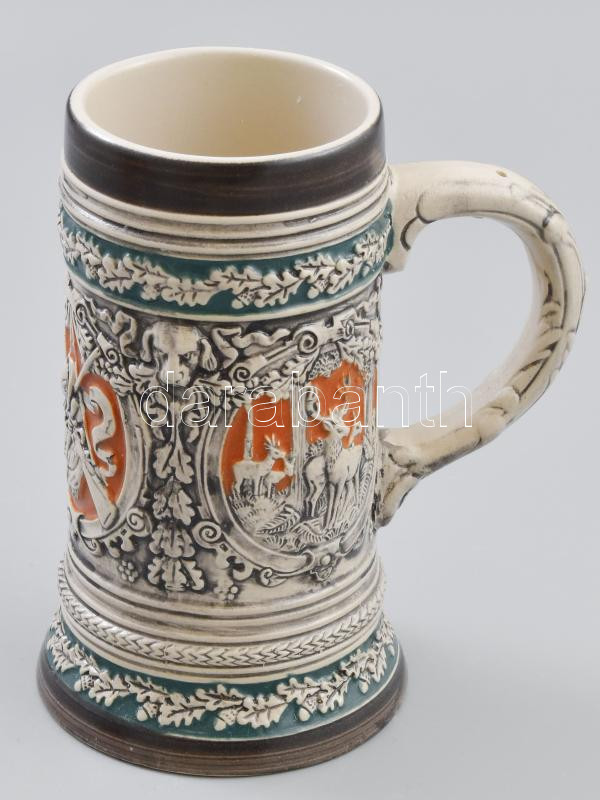 Gerzit original vadászkorsó, körben matt mázzal bevont vadászjelenetek, ornamentikus díszítéssel kialakított füllel, jelzéssel, hibátlan, m: 16,5 cm