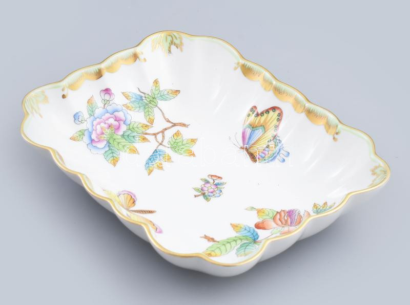 Herendi Viktória mintás kínálótál, kézzel festett, jelzett, hibátlan, 18,5x14,5 cm