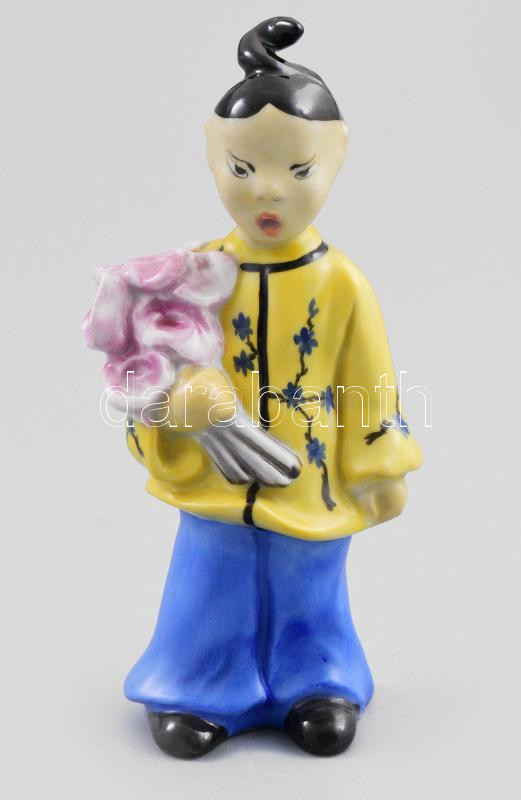 Herendi kínai figura, kézzel festett, jelzett, hibátlan, m: 12,5 cm