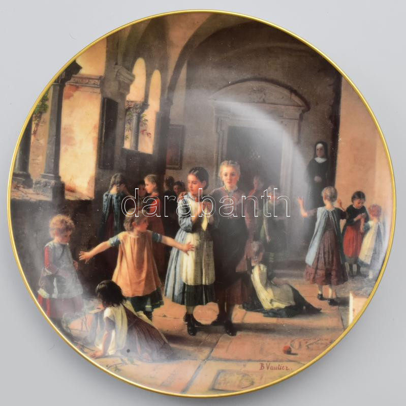 Hutschenreuther porcelán fali dísztányér, Benjamin Vautier - "In der Klosterschule" mintával. Matricás, jelzett, számozott, hibátlan, d: 20 cm