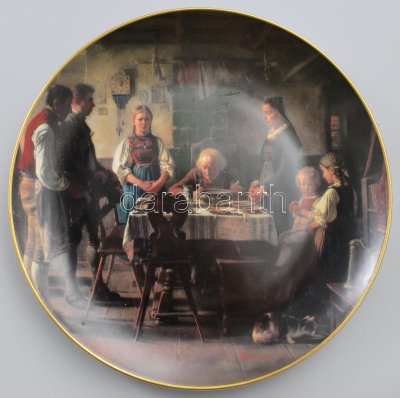 Kaiser porcelán fali dísztányér, Benjamin Vautier - "Das Dankgebet" mintával. Matricás, jelzett, számozott, hibátlan, d: 20 cm