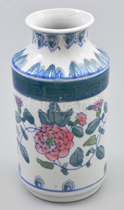 Kínaizáló rózsamintás váza, porcelán, jelzés nélkül, hibátlan, m:16,5 ...