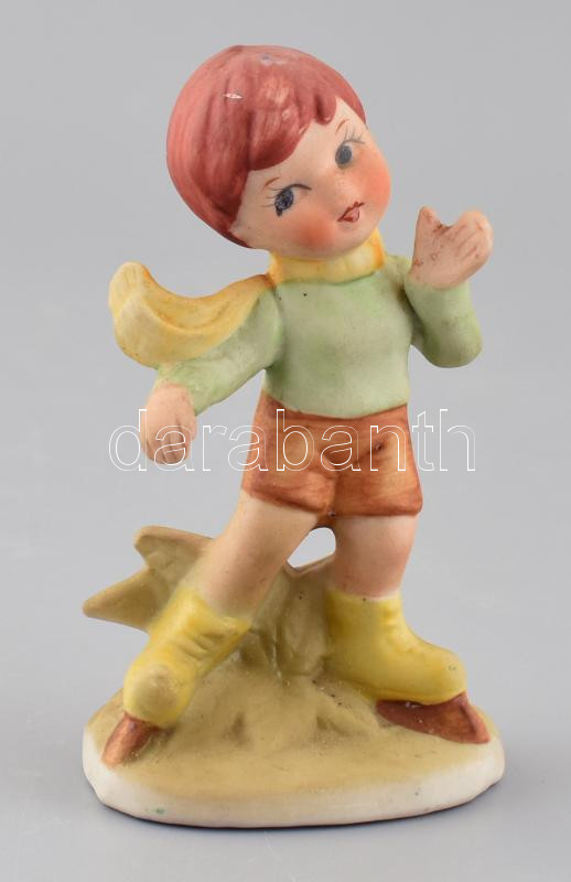 Korcsolyázó kisfiú, biszkvit porcelán figura, kézzel festett, jelzetle...