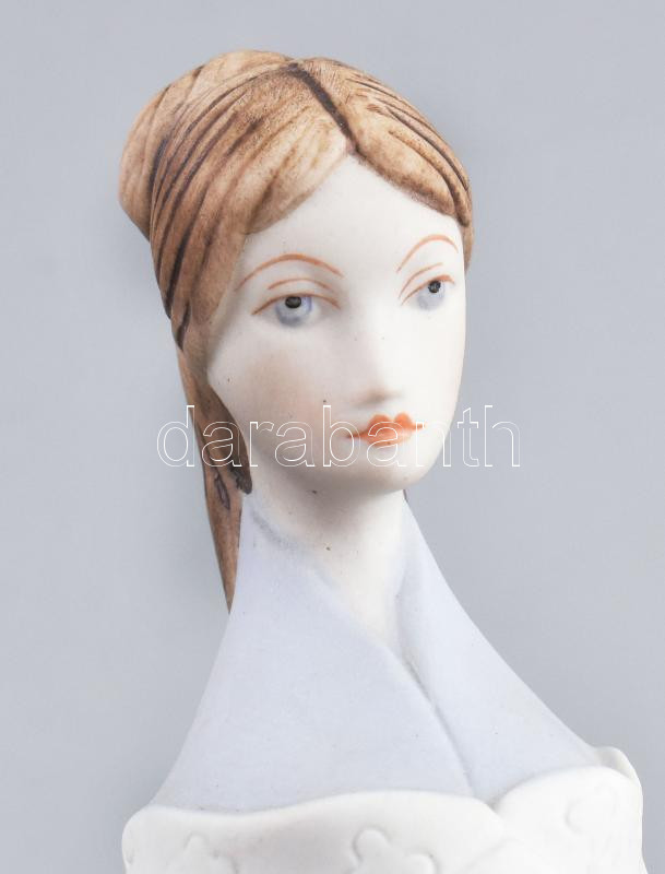 Royal Dux hölgy virággal, jelzéssel, hibátlan biszkvit porcelán, m: 31...
