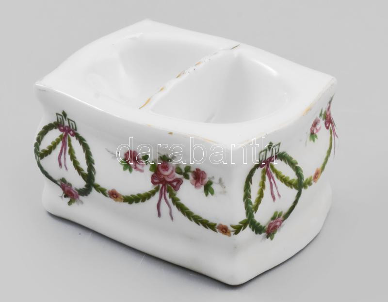 Só/Cukor tartó, porcelán, jelzés nélkül Matricás, jelzett, kopott 8 cm