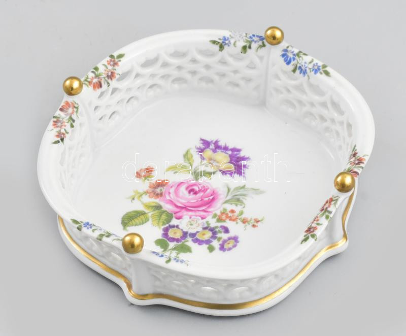 Wallendorf virágmintás kínáló, jelzett, matricás, kopással, d: 12,4 cm
