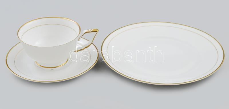 Weimar antik tejporcelán reggeliző szett, aranyozással, jelzéssel, hibátlan, d: 20 cm