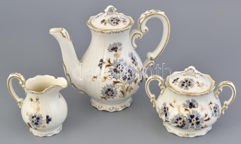 Zsolnay búzavirág mintás 6 személyes mokkás készlet. Kézzel festett, j...
