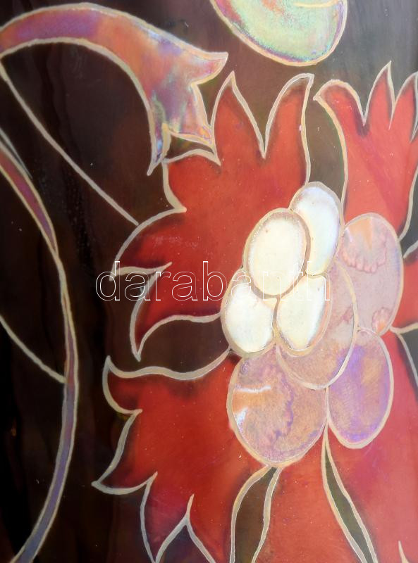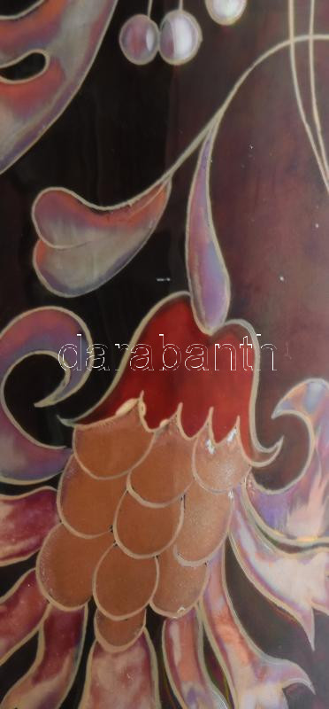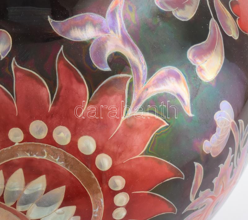 Zsolnay dísz váza. Többtüzű mázakkal. Palástján virág díszítménnyel. J...