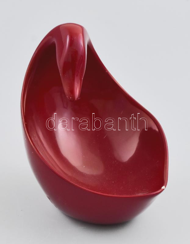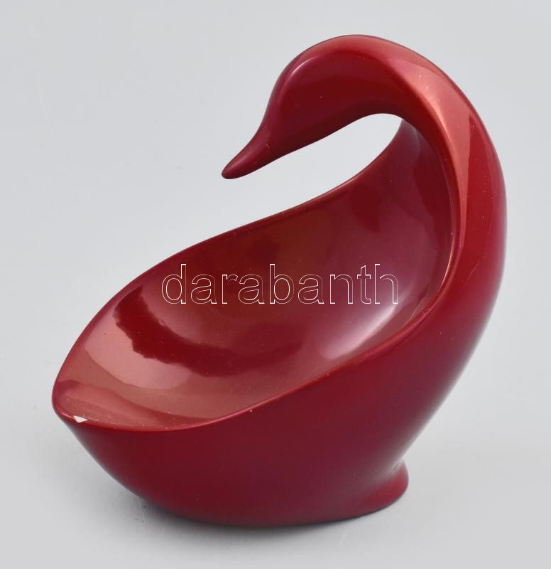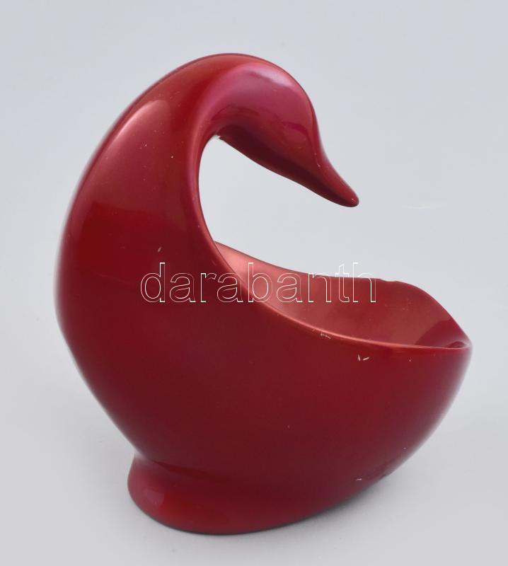 Zsolnay kacsa figurális névjegykártya tartó. Formába öntött fehércserép, ökörvér színű eozinmázzal borítva, alján eozinnal pecsételt jelzés. Terv.: Török János. Kopással, kis lepattanással, m: 13,5 cm