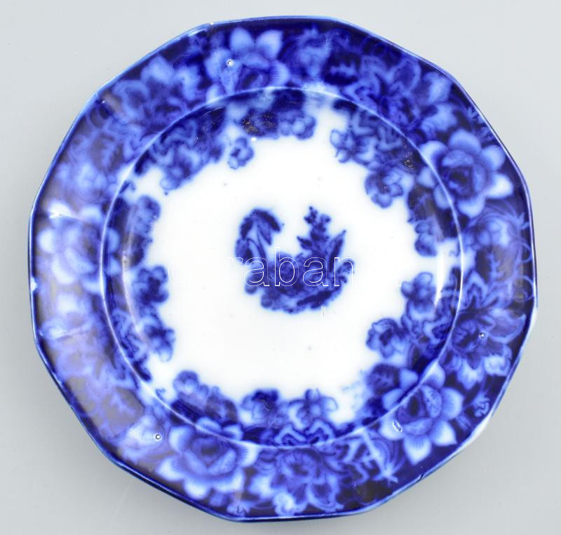 cca 1860 Máz alatti kobaltkék festéssel tányér, jelzés nélkül, kopássa...