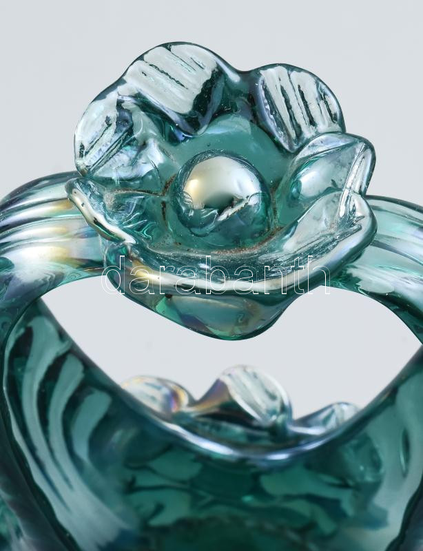 19. sz. vége, Irizáló hutaüveg kosár asztaldísz, jelzés nélkül, kis tű...