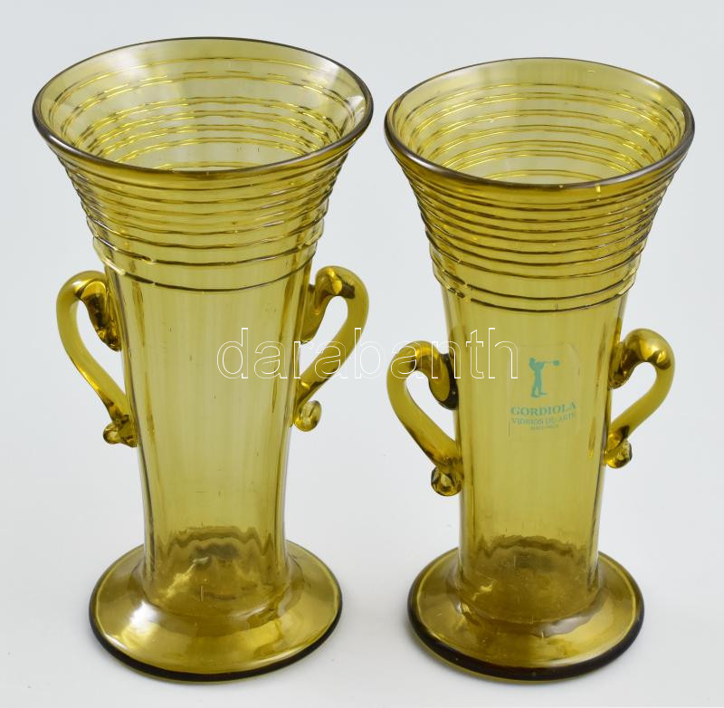 2 db Gordiola Mallorca spanyol szakított hutaüveg váza, az egyik etikettel jelzett, m: 15 cm