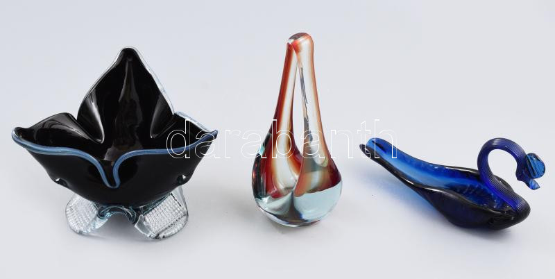 3 db üveg asztaldísz, jelzés nélkül, kis kopással, m: 8-16 cm
