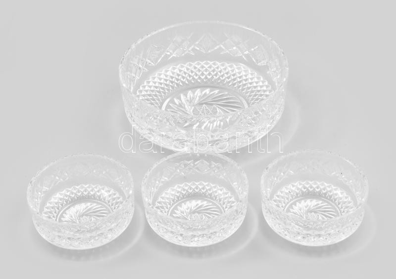 4 darabos kristály bólés szett, gazdag csiszolással, díszített, jelzés nélkül, hibátlan, d: 11, 19,5 cm