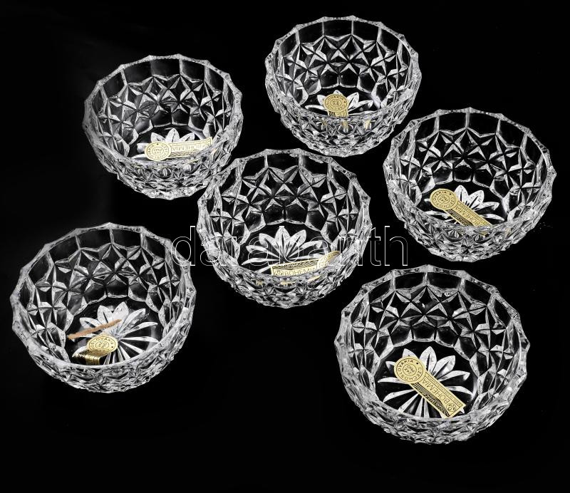 6 db kristály kínáló tálka, Bohemia jelzett d: 9 cm
