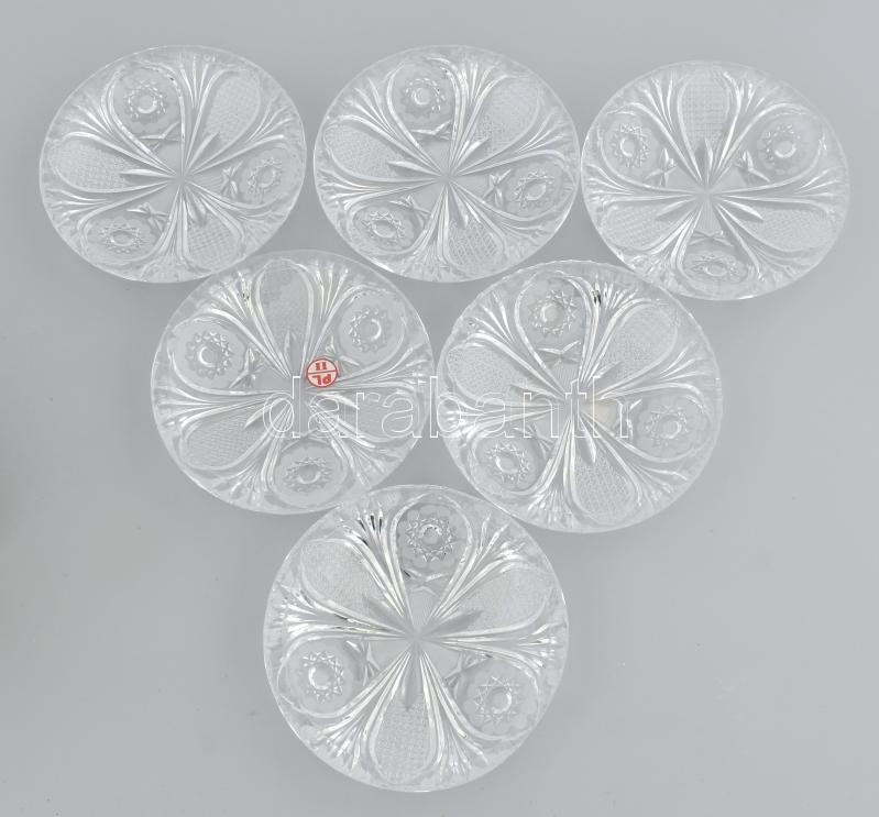 6 db kristály süteményes tányér szett d: 16 cm Hibátlan, eredeti doboz...