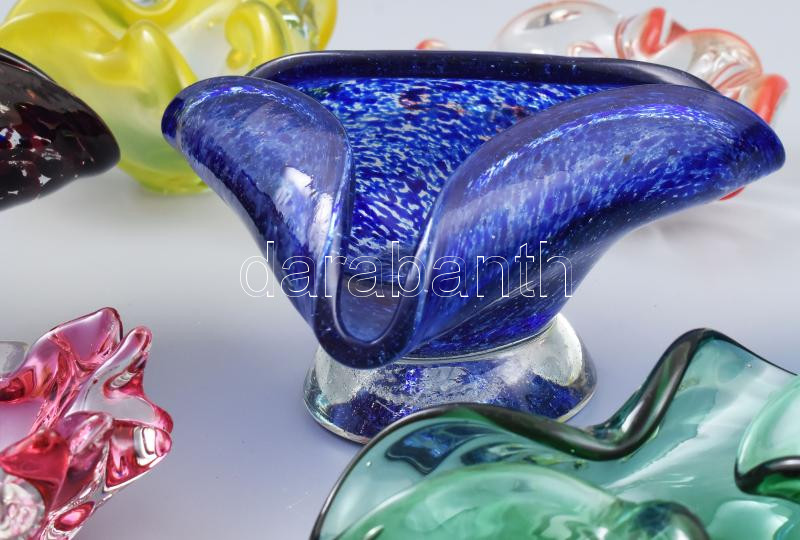 8 darab régi és antik cseh üveg asztaldísz, színezett és áttetsző huta...