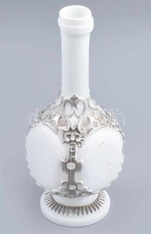 Antik ezüstözött tejüveg palack, jelzés nélkül, kopással, m: 22,5 cm
