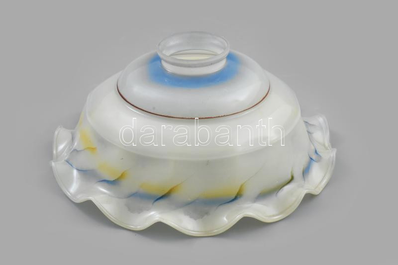 Antik kézzel festett, színezett lámpabúra, kopással, d: 24,5 cm