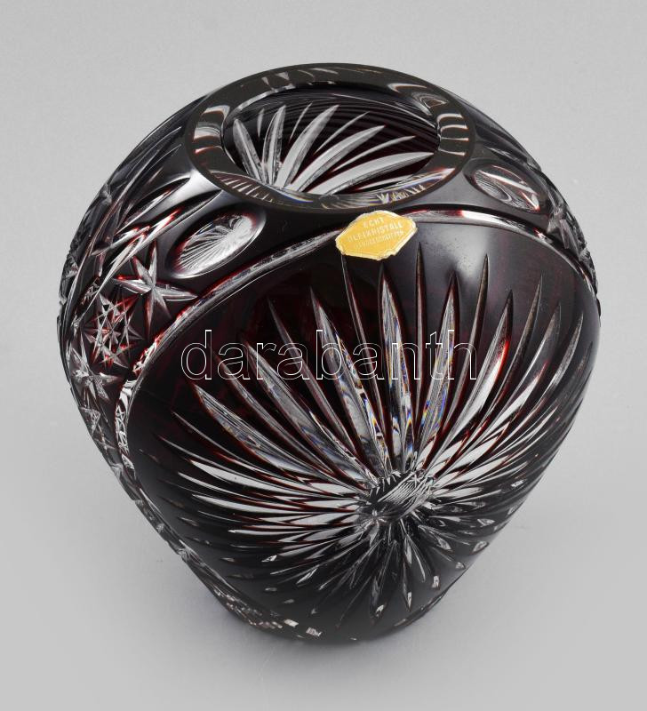 Bíbor ólomkristály váza, gazdag korongozott díszítéssel, címkével jele...