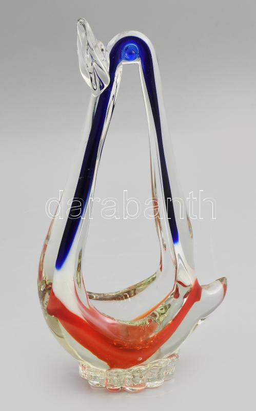Cseh üveg stilizált madár asztaldísz, jelzés nélkül, hibátlan, m: 24 c...