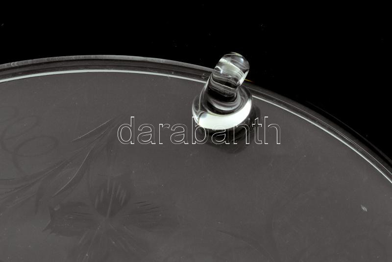 Csiszolt szőlőmintával díszített üveg tortatál, 3 lábon álló, jelzetle...