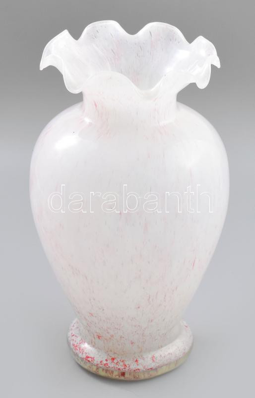 Fodros szélű üveg váza. Többrétegű, rózsaszínes, huta üveg. Hibátlan 3...