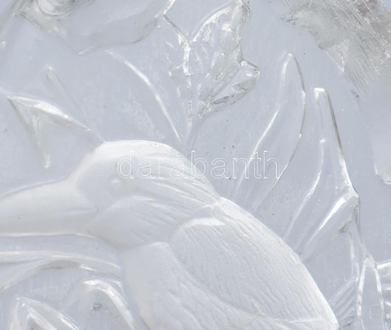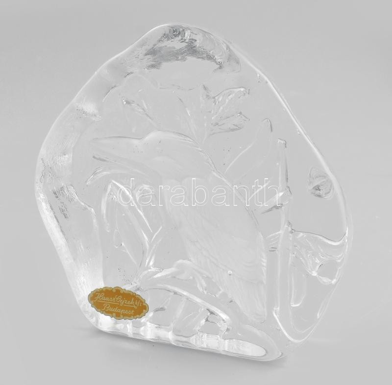 Haas & Czjek Budapest Holló díszítéses levélnehezék. Öntött, savmaratott üveg. Címkével jelzett, hibátlan, 13x3x13 cm