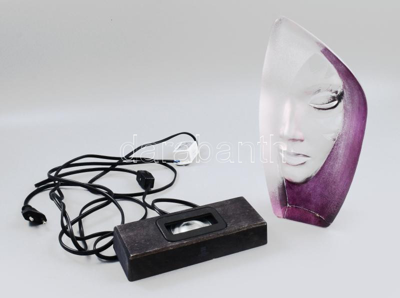Mats Jonasson (svéd, 1945-): Kristály szobor / dísz, alulról világító állványon. Jelzett., sorszámozott 147/299. Üveg 28 cm. / Mats Jonasson svéd design crystal statue. Marked, numbered 28 cm With lightning stand