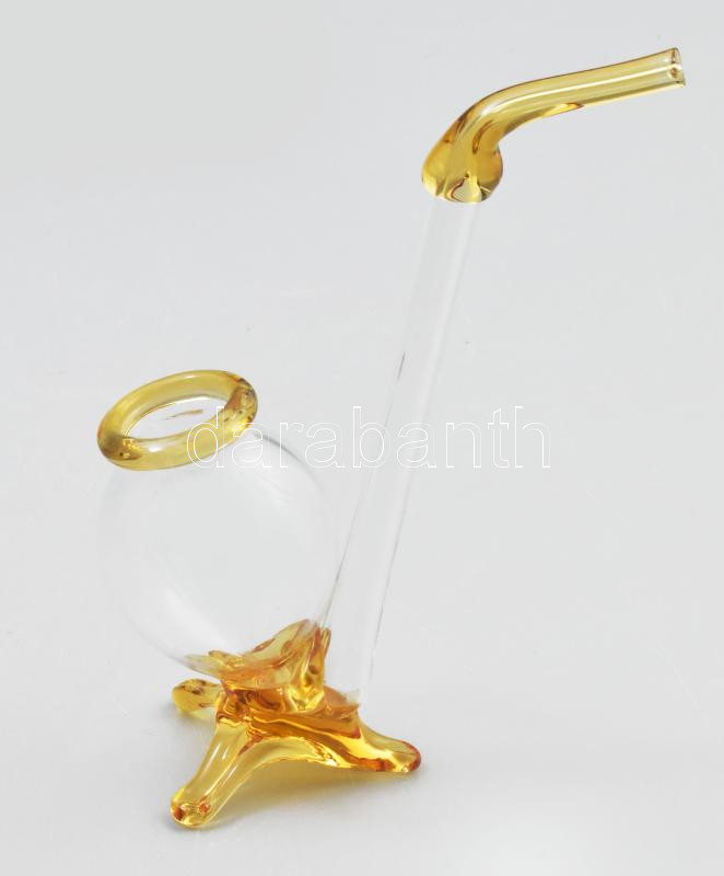 Murano borostyán színezésű üvegpipa, jelzés nélkül, hibátlan, m: 16,5 ...