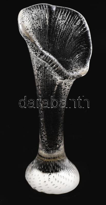 Murano design váza, tulipánszerű formába fekete üvegmorzsával szórt ip...
