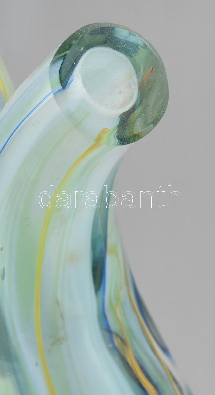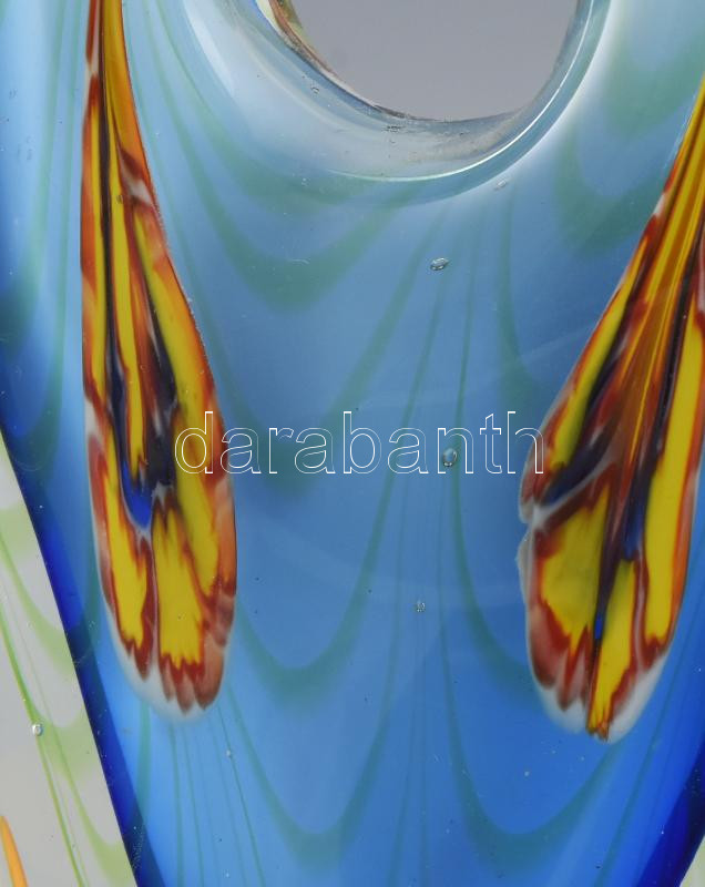 Murano stúdiómunka. Anyagában színezéssekkel, elhúzott millefiori mintákkal. Jelzés nélkül, talpánál kopással, pattogzással, m: 37,5 cm