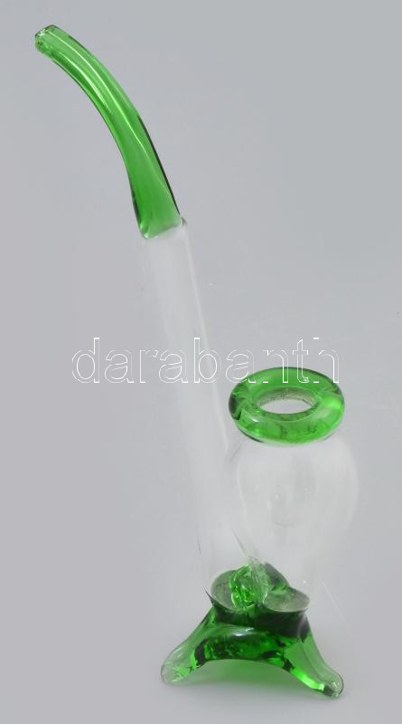 Murano zölden színezett üvegpipa, jelzés nélkül, kopással, m: 15 cm